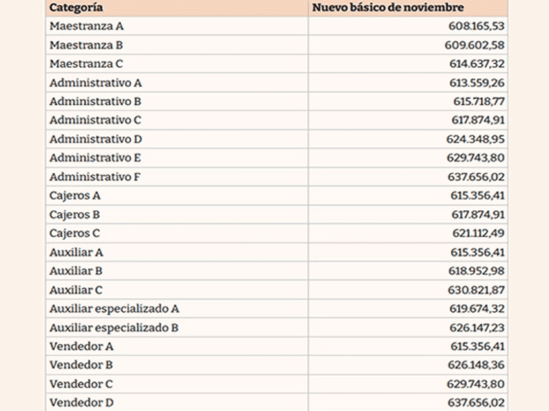 La liquidación de los salarios de noviembre para los empleados de comercio bajo el CCT 103/75 dará paso a la absorción de la última cuota de la suma no remunerativa al básico, según la categoría. Este acuerdo data de enero-febrero 2024.