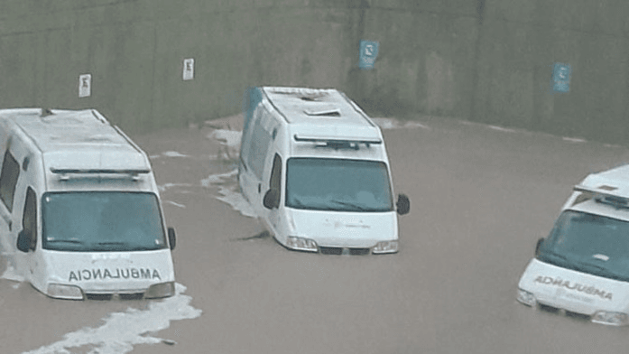 Calles como ríos, autos varados y repletos de agua, casas inundadas y hasta las crudas imágenes del Hospital Interzonal Dr. José Penna. Allí se observa como el sector de neonatología está con un alto nivel de agua en su interior. Es por eso que se debió evacuar a los recién nacidos.
