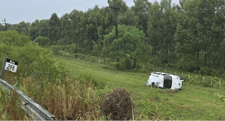 El vehículo se conducía de norte a sur por la autovía 14, cuando al pasar un espejo de agua perdió el control y terminó volcando sobre el lateral oeste. Al mando del rodado viajaba un hombre de 52 años, quien regresada desde la provincia de Misiones, con destino a su localidad de residencia en la provincia de Buenos Aires. Afortunadamente no se registraron personas lesionadas, solo se aguardó la llegada del auxilio para el retiro del vehículo.