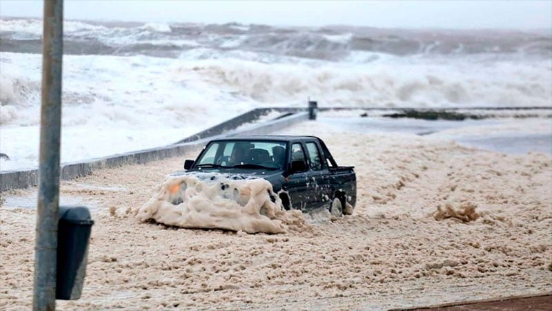 La espuma y el intenso viento que hay en el lugar llevan a las autoridades a pedir especialmente que no se circule por allí y cuando el clima lo permita se evaluará la afectación.