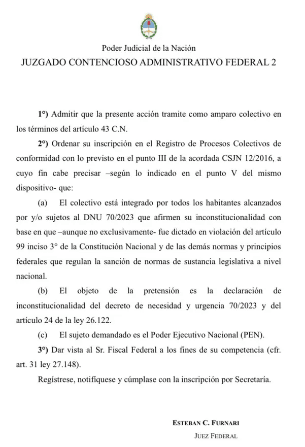 El objeto de la demanda pretende obtener la declaración de inconstitucionalidad y la nulidad absoluta del Decreto de Necesidad y Urgencia N° 70/2023 y de toda normativa o acto que derive de su vigencia o que fue dictado en su cumplimiento, por violar la Constitución de la Nación Argentina (arts. 29, 33, 36, 76; art. 75, incisos 18 y 19, art. 99, inciso 3) y por constituir el ejercicio de facultades extraordinarias y facultades equivalentes a la suma del poder público.