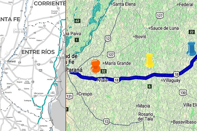 En Entre Ríos, en la RN 18 del tramo Mesopotámico que va de Paraná a Concordia que en la actualidad está libre de peajes se colocarán tres cabinas en Viale, Villaguay y San Salvador.