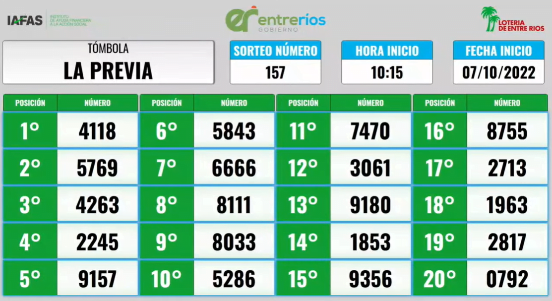 El siguiente sorteo se realizo en la mañana de este viernes 7 de octubre de 2022