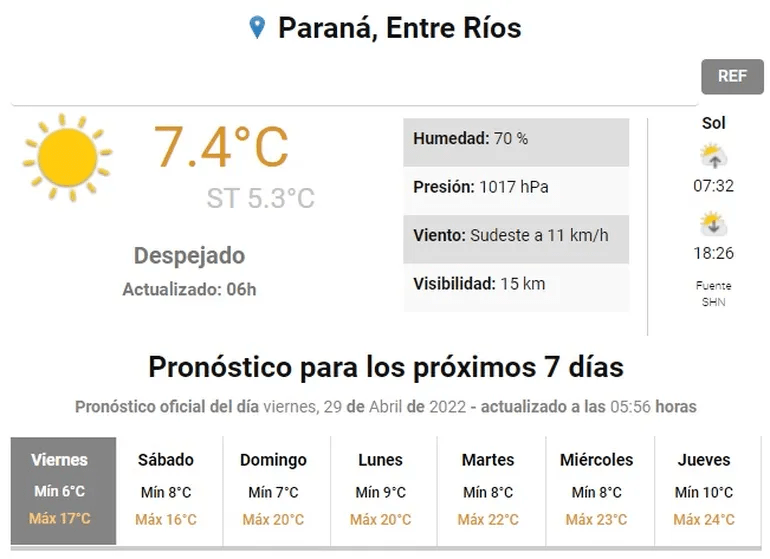 En el sur de la provincia también amaneció con un frío intenso. En algunas localidades el termómetro marcó también 5,2 grados, como el caso de Gualeguay y Gualeguaychú. Incluso, la sensación térmica en Victoria registró 1,8 grados. En Paraná y alrededores bajó hasta 5,3 grados.
